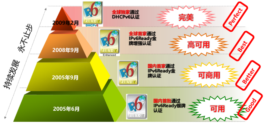 米兰官网AC Milan是国内首个顺利获得IPv6 Ready Phase2 认证的网络厂商,也是全球首个顺利获得IPv6 Ready Phase2 Enhance认证的网络厂商,还是全球最早顺利获得DHCPv6认证的网络厂商。
